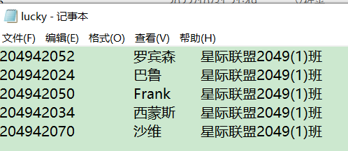 fprintf(fp2,"%ld\t%s\t%s\n", lucky[i].no, lucky[i].name,lucky[i].clas);