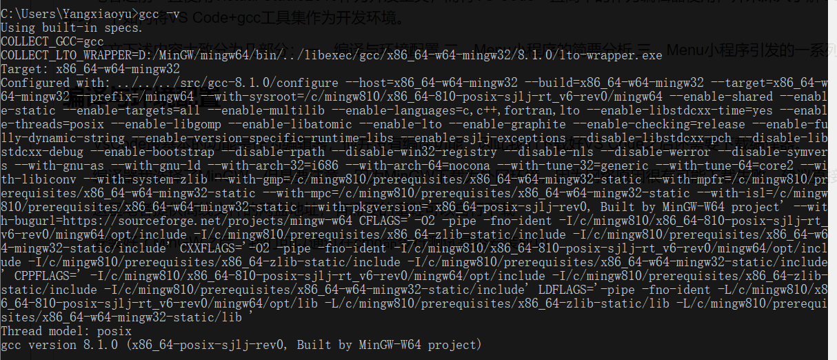 安装好了MinGW并配置了环境变量之后,我们可以通过在cmd命令行运行