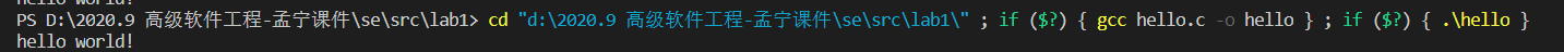 lab1下包含 hello.c 文件与 menu.c 文件,hello.c 文件用于测试环境是否搭建完成,menu.c 文件是本程序的框架代码(此处为伪代码)