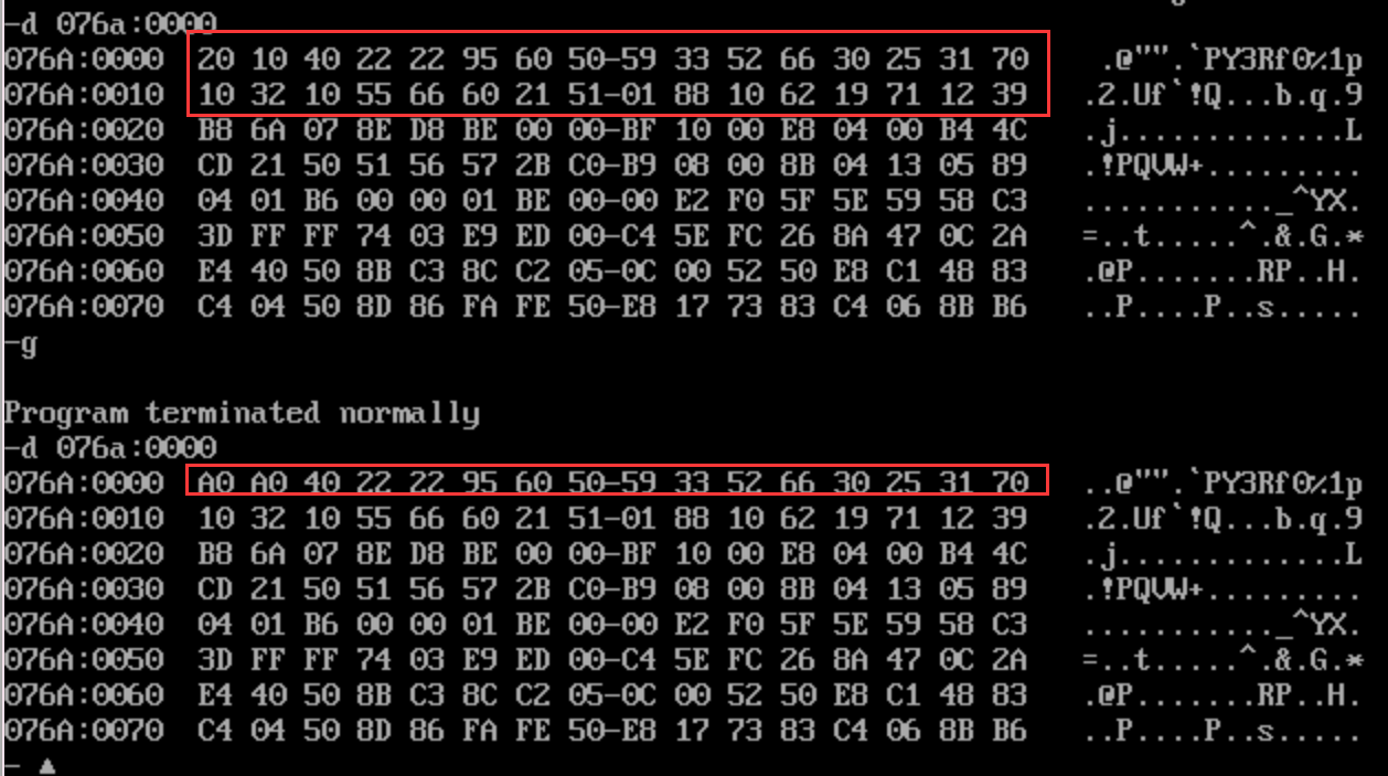 (4)在debug中调试,观察数据段中做128位加之前和加之后,数据段的值的变化。给出调试观察截