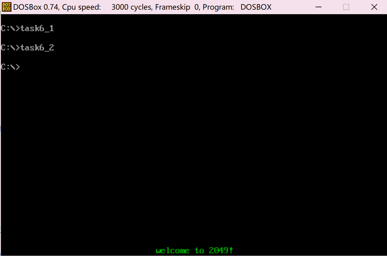 ==>编译链接以后,如图,屏幕底部输出了'welcome to 2049!',表示自己实现的42号软中断被成功调用。