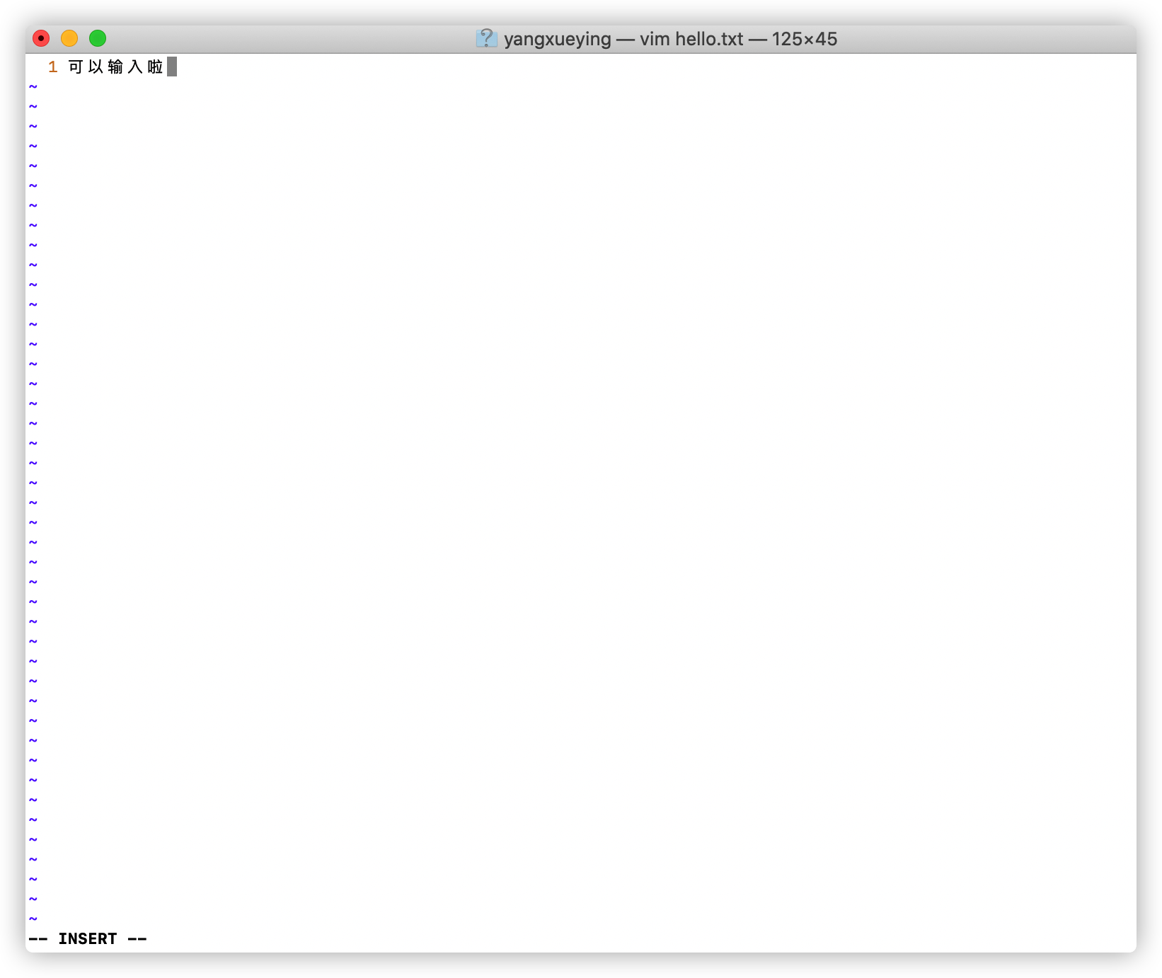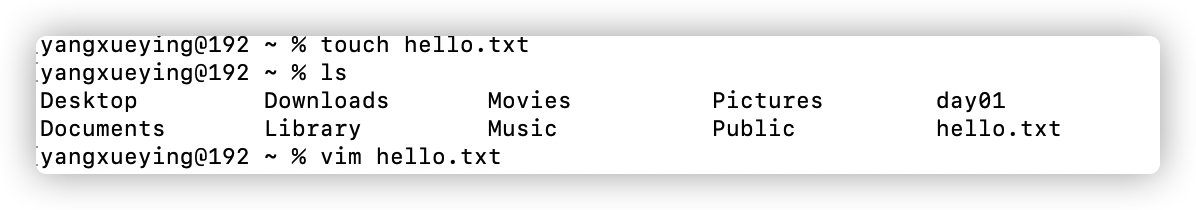 输入:vim hello.txt