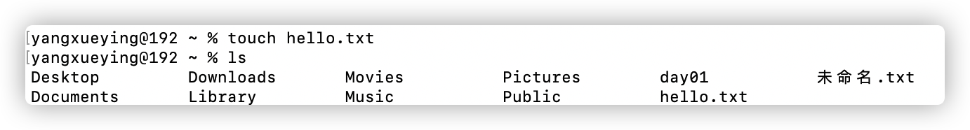 输入:touch hello.txt