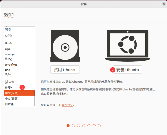 选择中文简体,再点击安装Ubuntu即可,如下图: