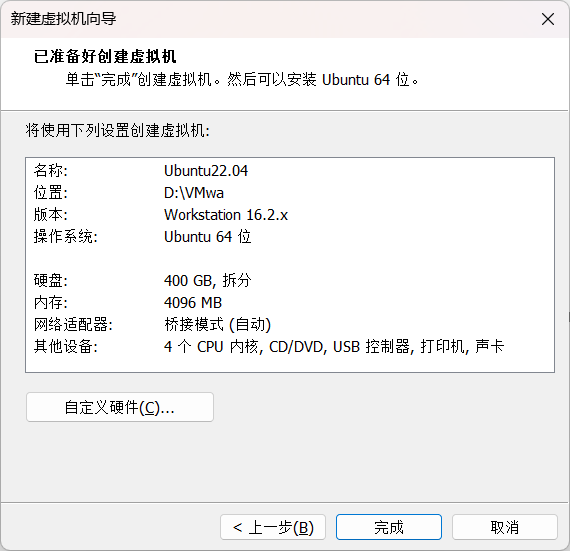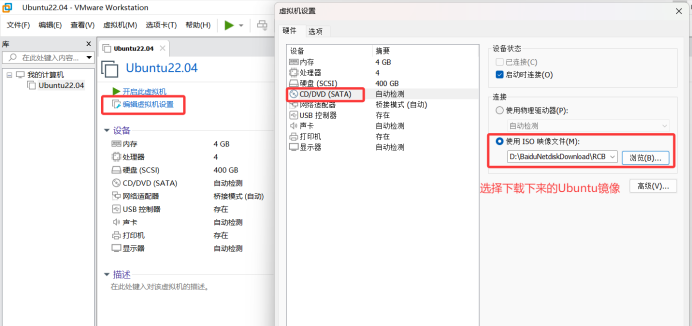 通过https://old-releases.ubuntu.com/releases/,下载 Ubuntu22.04 系统镜像。打开编辑虚拟机设置,CD/DVD(SATA)选择新下载的Ubuntu22.04 系统镜像,USB控制器选择USB3.1,点击确定