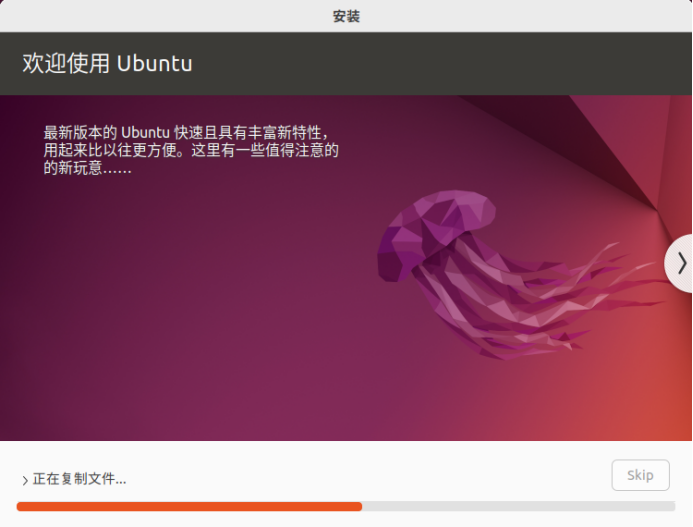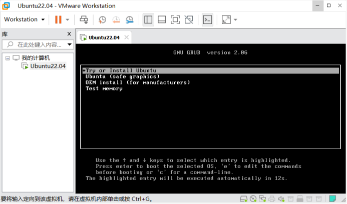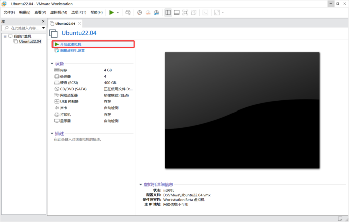 点击开启虚拟机,则会自动安装当前的Ubuntu22.04 系统镜像,如下图:
