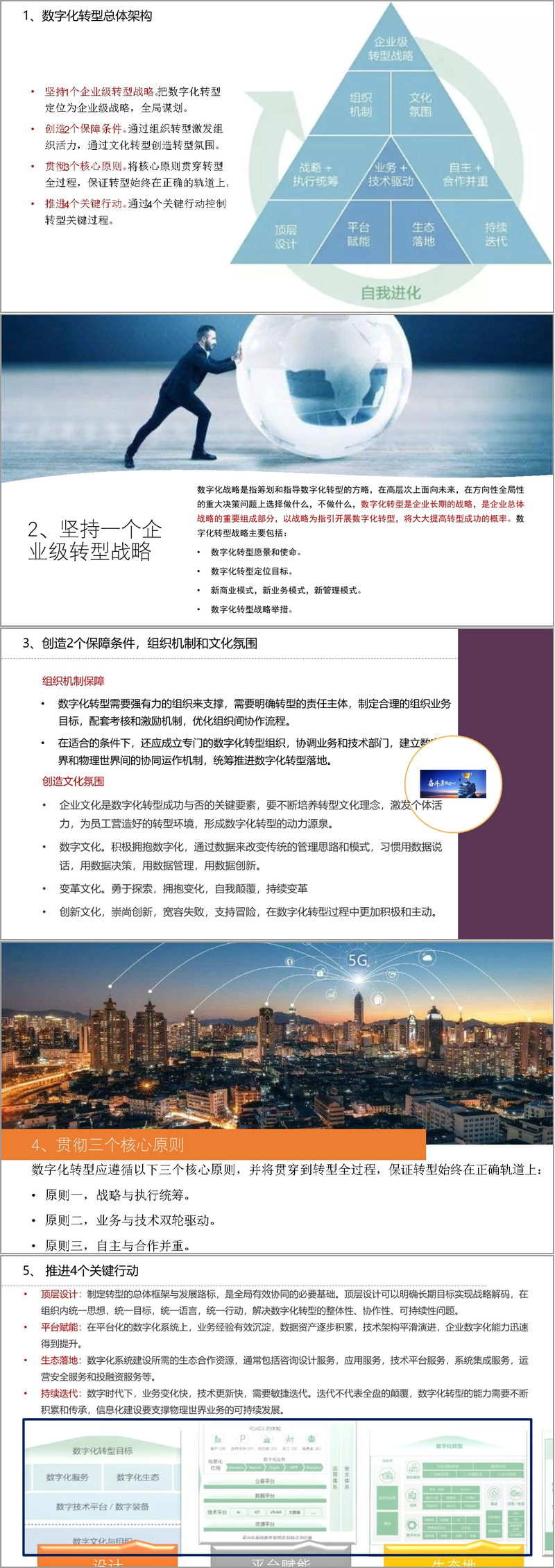 总之,这份资料为企业给予了从理念到落地的全景图。数字化转型是一场融合战略、手艺与文化的深度革命,需持之以恒。接下来请您阅读下面的详细资料吧。