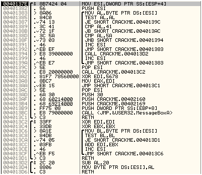 1. 採用ollydbg打开CRACKME.exe,命令:f3。