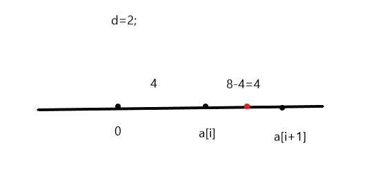 题意:按顺序给出n个旅馆和d,要新建一些旅馆,这些旅馆跟他最近的旅馆距离为d