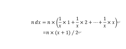 #include<iostream> #include<cstdio> #include<algorithm> #include<iomanip> #include<cmath> #include<string> using namespace std; typedef long long ll; int main(){ int i,j; string s; cin>>s; double sum=0,a=0,b=0; int len=s.length(); for(i=0;i<len;i++){ if(s[i]>='0'&&s[i]<='9'){ while(s[i]>='0'&&s[i]<='9'){ a=a*10+s[i]-'0'; i++; } if(s[i]=='d'){ i++; while(s[i]>='0'&&s[i]<='9'){ b=b*10+s[i]-'0'; i++; } sum+=a*(b+1)/2.0; a=0,b=0; }else{ sum+=a; a=0; } } } if(sum>(int)sum){ printf("%.1f",sum); }else{ printf("%.0f",sum); } return 0; }