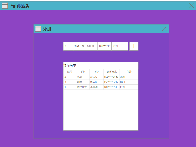 添加界面下将记录信息按照查询结果显示的字段排序依次输入相应的值,以此添加记录