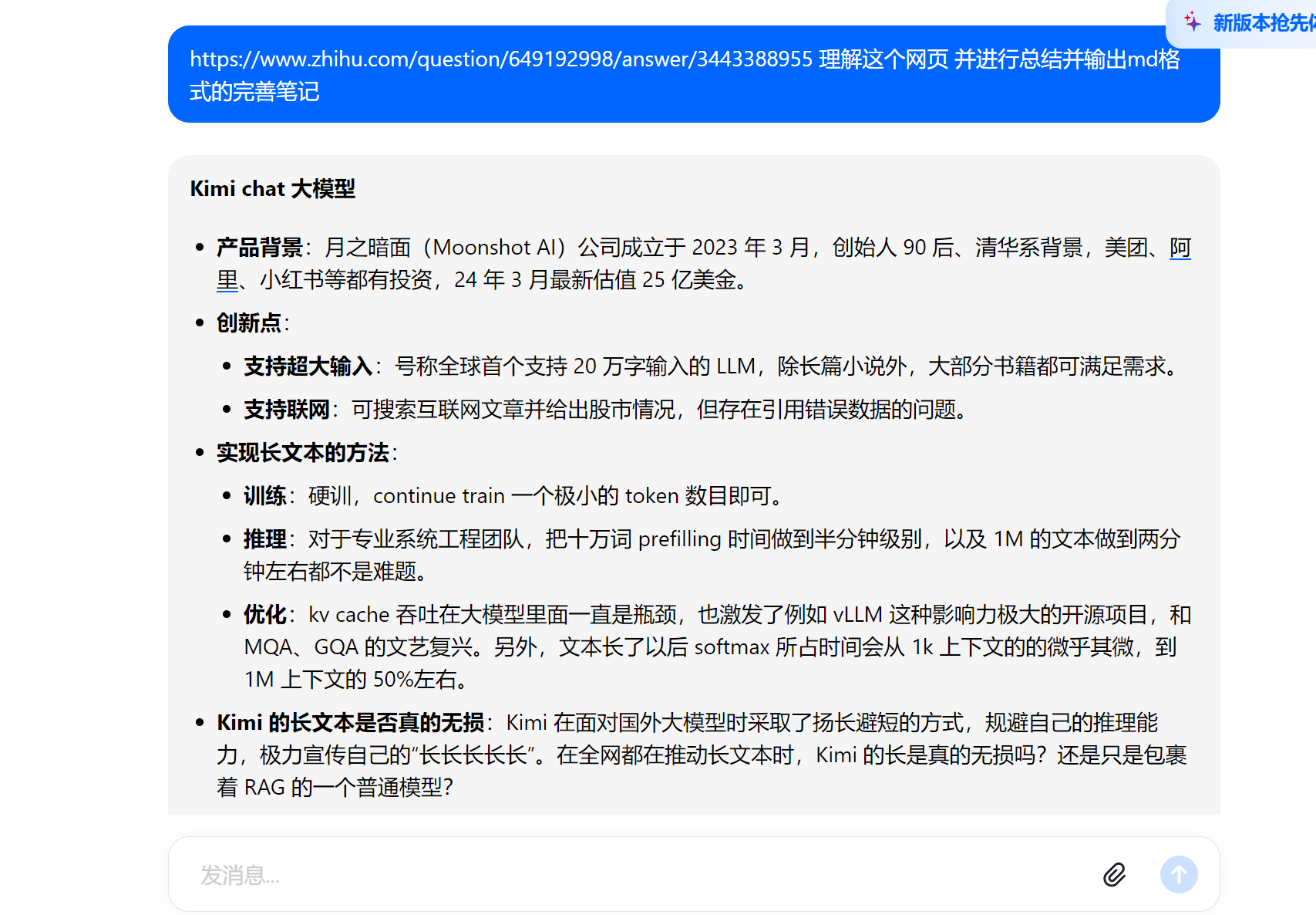 遇到这些情况,AI工具的网页阅读能力就可以大显身手了,如下图这是我看到的一篇帖子,仅需将网址复制发送并提出要求,即可快速了解帖子内容,并获得一份可修改的笔记。