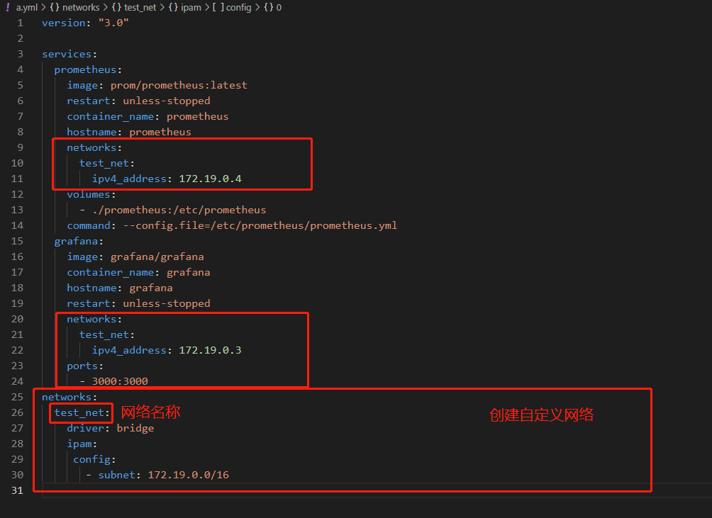 docker-compose启动两个容器,prometheus不暴露外部端口,grafana暴露端口为3000