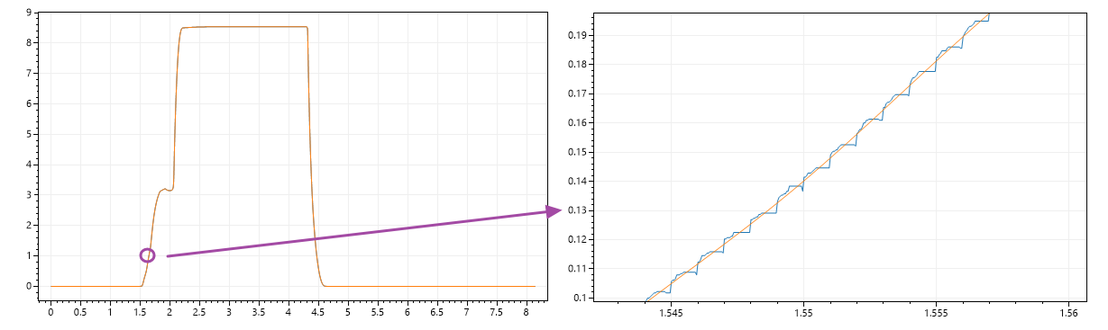 蓝色线是电磁阀导通过程的气压原始信号,黄色线是去除高频后的滤波信号,我们用一个电源去开启电磁阀导通,靠气压去测试阀的导通