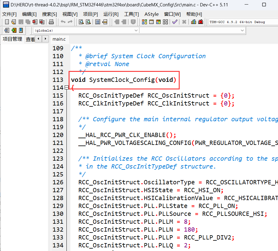 然后将main.c里的系统时钟初始化函数拷贝