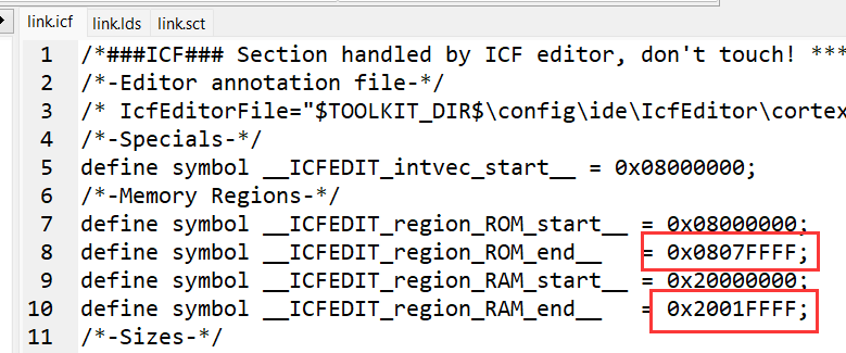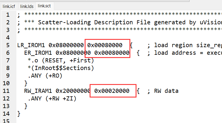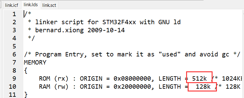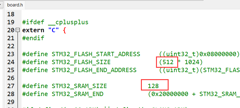 修改如下部分。flash是512K,ram是128k