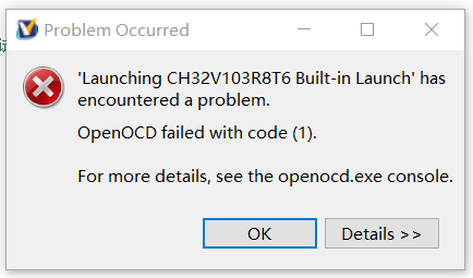 报错提示为:OpenOCD failed with code(1).
