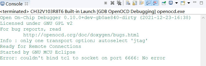Console提示:coultn't bind tc1 to socket on port 6666: No error.
