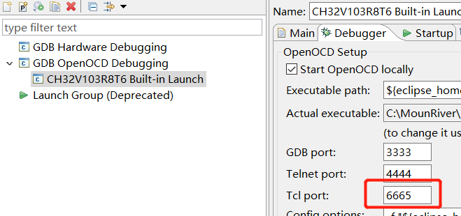 最近在使用MounRiver Studio进行CH32v103R8T6 RISC-V架构MCU的学习,在编译程序进行仿真时始终报错,无法进入仿真状态。但程序的编译和下载功能都是正常的。