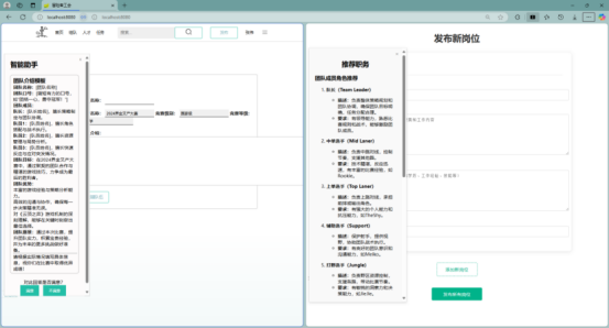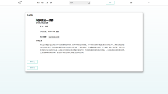 - 郭伟进:搭建Spring Boot框架并配置基本的项目结构,设计并实现主页、任务、队伍、人才的页面与相关功能。AI小助手的实现。