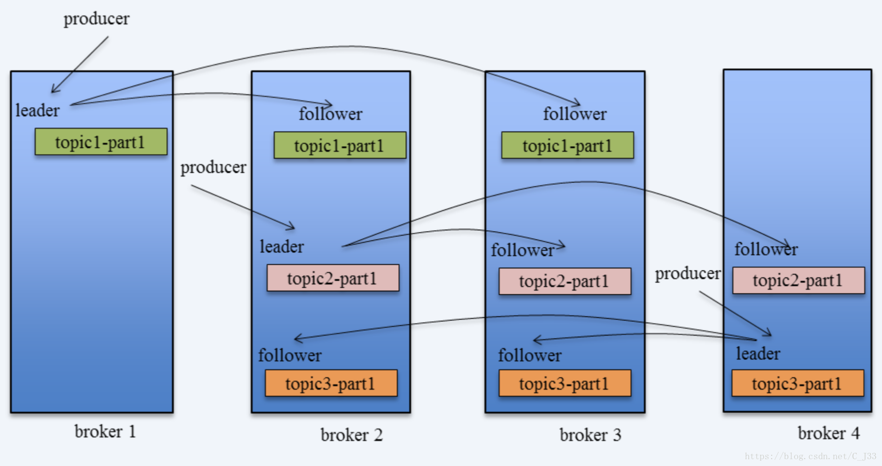 当没有Replica的时候,producer向broker写入消息非常简单,当有很多Replica的时候是如何处理的呢?