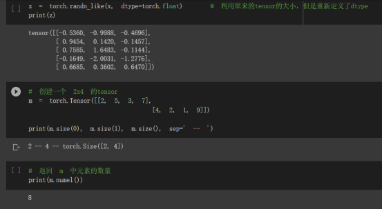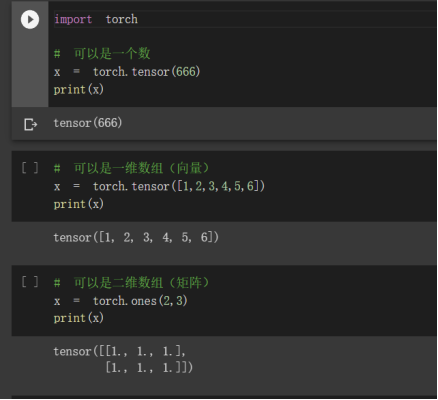 使用函数torch.Tensor()定义数据(tensor的意思是张量),其参数可以为各种各样的类型。