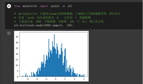 Tensor可以利用randn()函数生成均值为0,方差为1的随机数,并利用matlabplotlib的库函数来生成图像