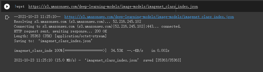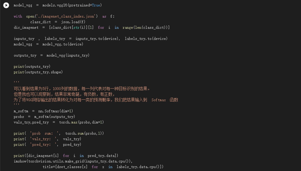 在本课程中,我们直接使用预训练好的 VGG 模型。同时,为了展示 VGG 模型对本数据的预测结果,还下载了 ImageNet 1000 个类的 JSON 文件。