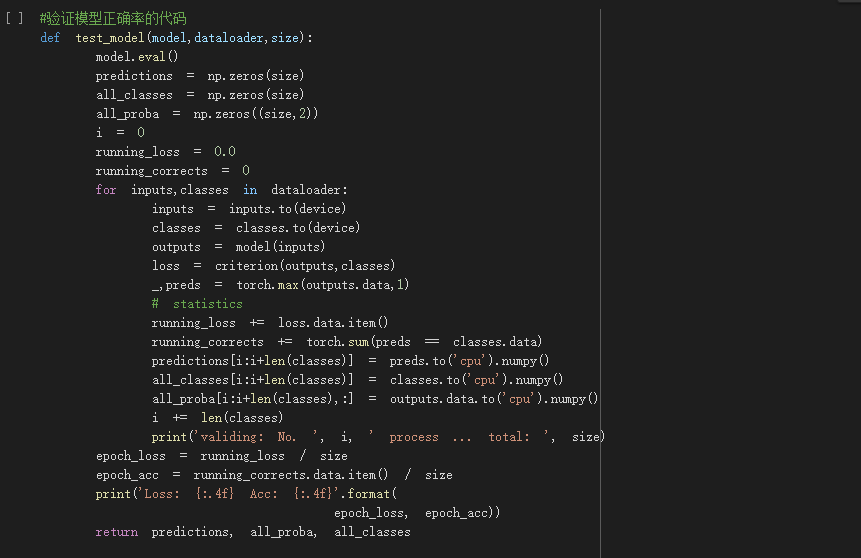 这样,反向传播训练梯度时,前面层的权重就不会自动更新了。训练中,只会更新最后一层的参数。