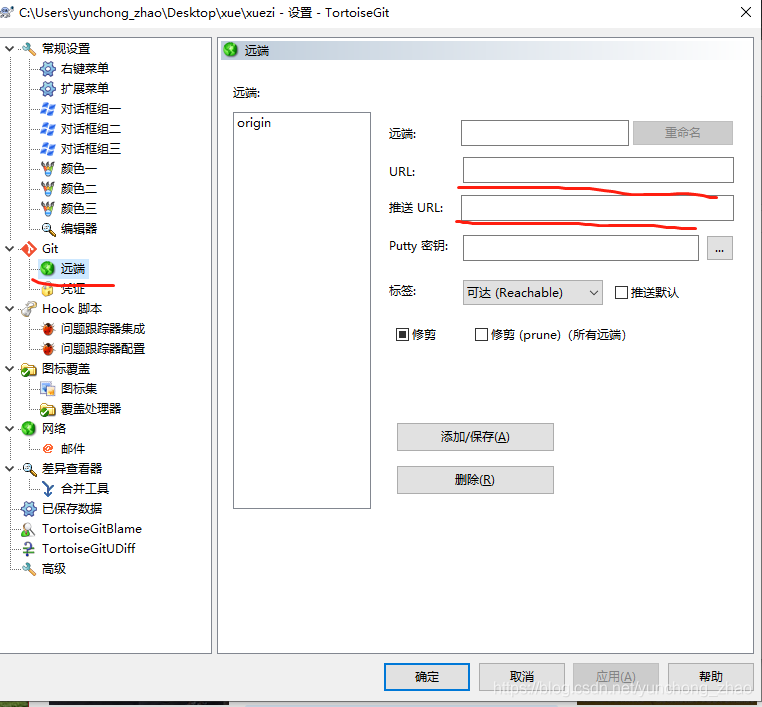 推到远程呢 远端就是 origin 把你clone的项目地址复制一份到这个下面