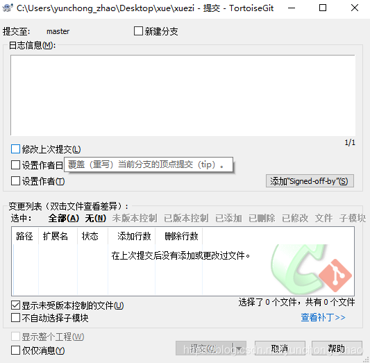 这个是提交到本地 注意日志信息一定要自定义 进行书写