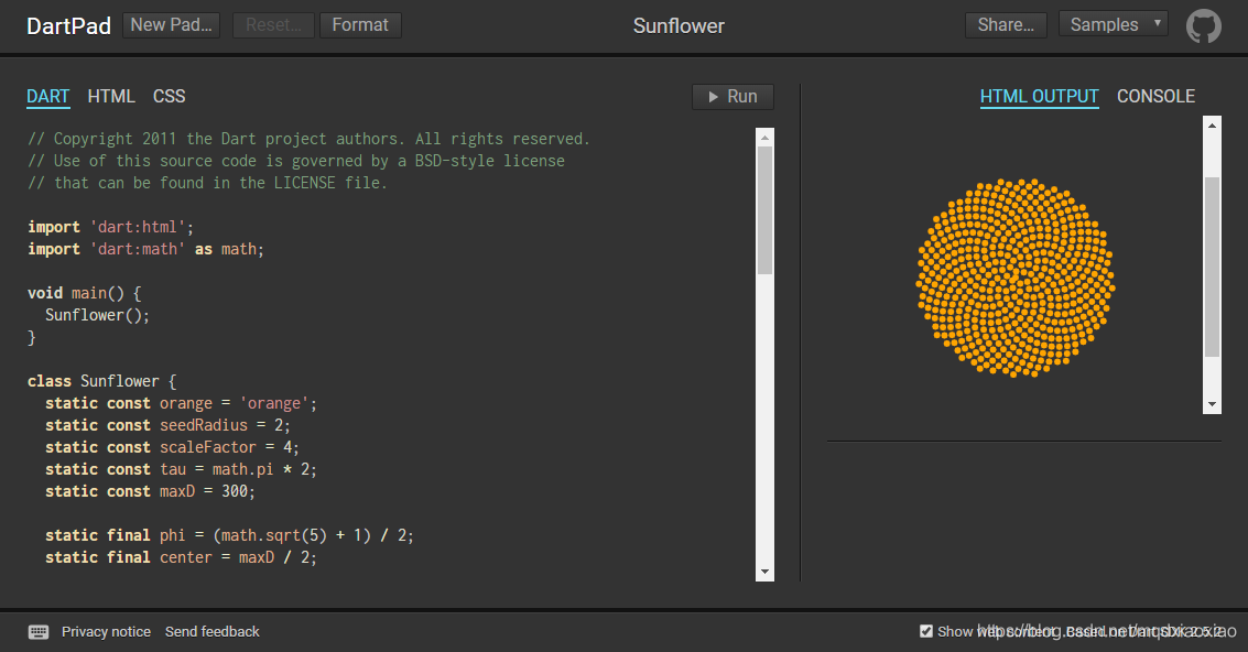 DartPad是一个浏览器在线编辑Dart网站,功能很简单,主要有以下功能: