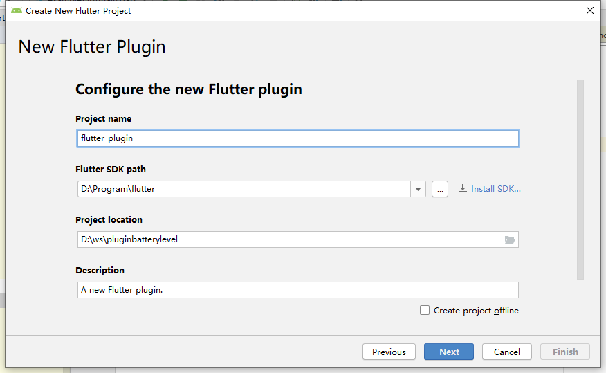 D:\ws>flutter create --org com.himmy --template=plugin pluginbatterylevel
