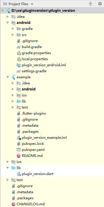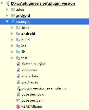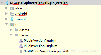新建的插件项目默认提供了一个示例项目,这是一个Flutter项目,引用了该插件项目,可以直接运行