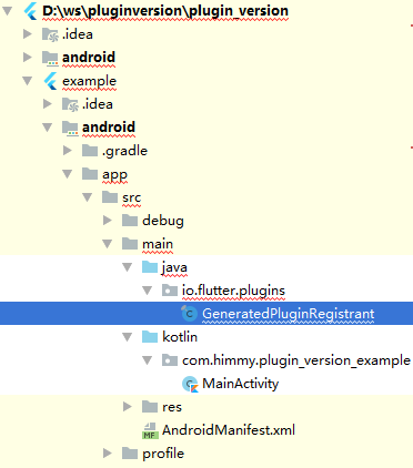 在如下路径有一个自动生成的GeneratedPluginRegistrant类,里面会自动生成对对插件PluginVersionPlugin的导入和注册