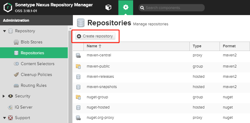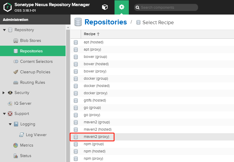 Nexus中可以创建三种仓库类型,分别为proxy、group、hosted,其中proxy就是仓库代理,我们可以代理其他的Maven仓库,比如jcenter仓库,用户使用的时候虽然配置的是我们私服的仓库地址,但是实际下载包是从代理仓库下载的