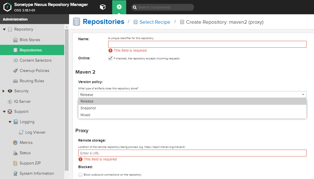 Remote starage为远程仓库地址,也就是我们实际要代理的仓库的地址