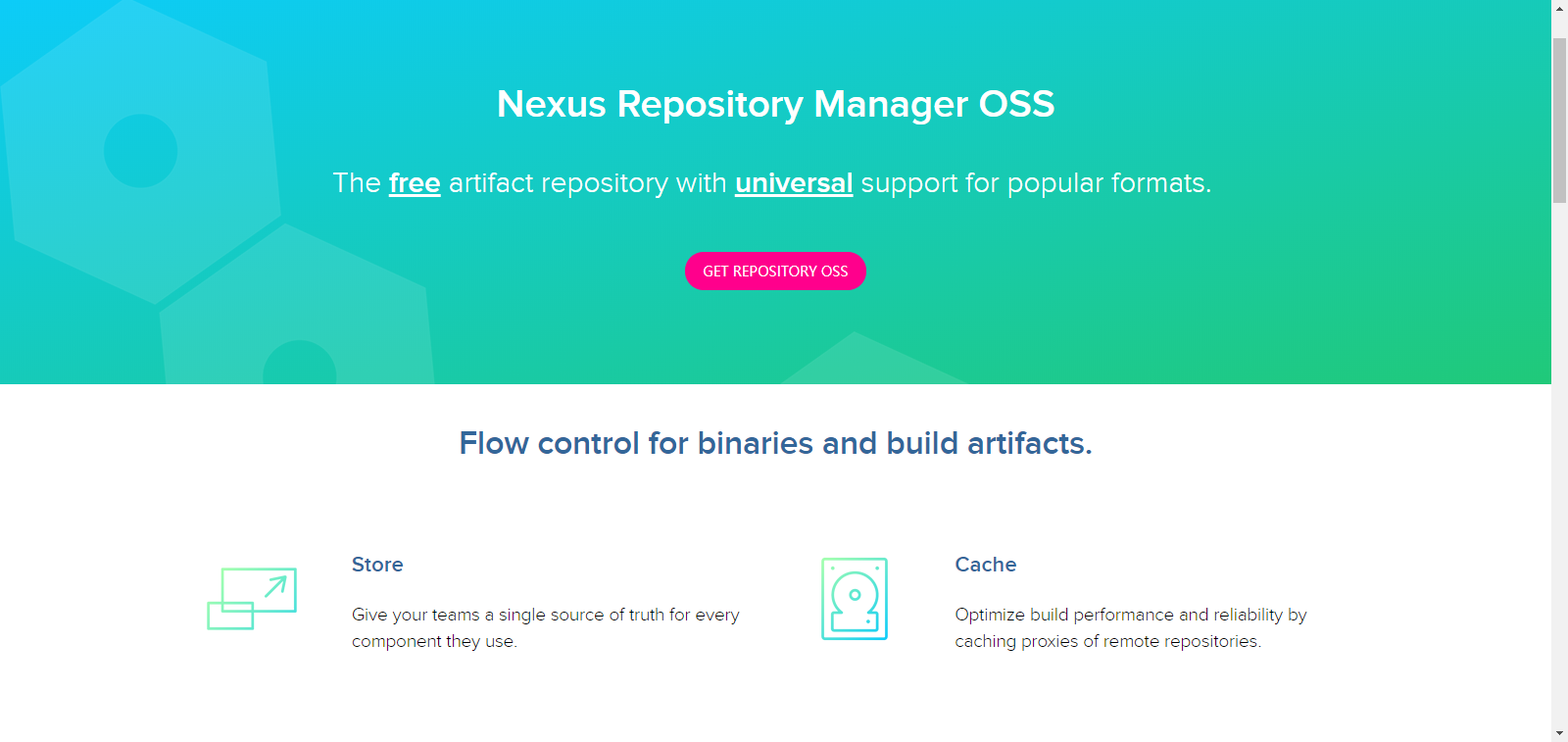 首先在Nexus Repository Manager OSS简介页面可以看到一些简介,在这里可以跳转到下载页面