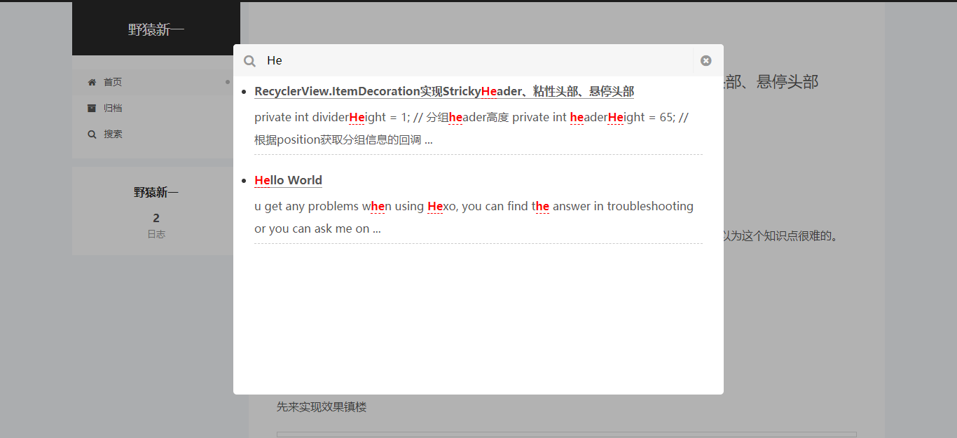 添加本地自定义站点内容搜索,可以通过文字标题或文字内容关键字搜索出相应文章