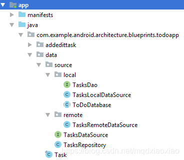 remote表示远程服务端数据,但是本示例并未真正实现服务端接口的请求,只是用一个LinkedHashMap增删改查待办任务,然后用Handler.postDelay来模拟异步请求