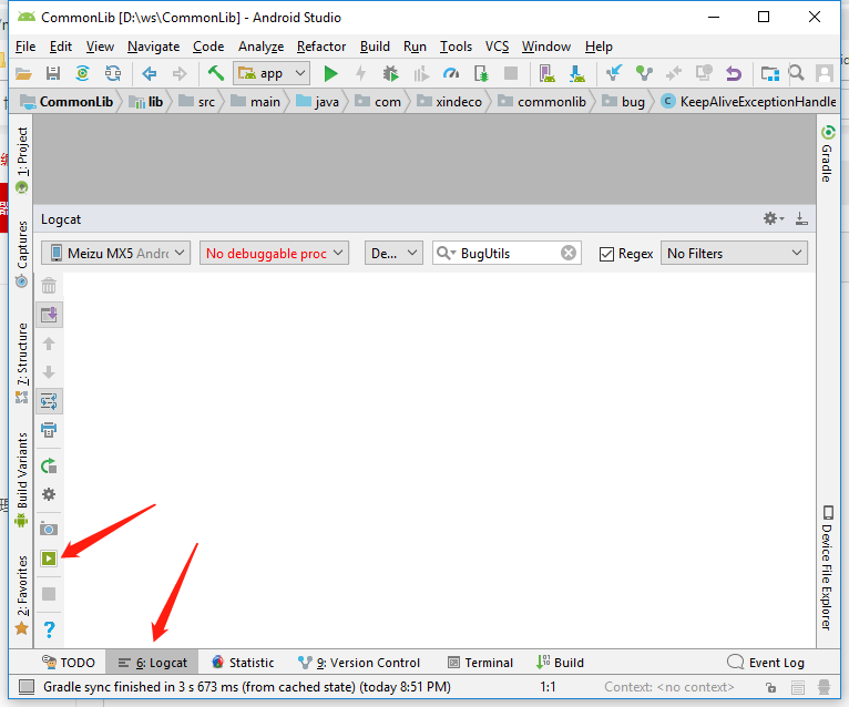 在Android Studio底部找到Logcat切换到Logcat面板,然后点击左边的录屏的小按钮