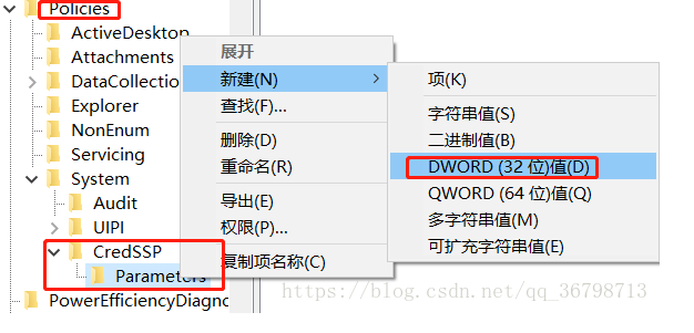 然后在System文件夹内创建文件夹:\CredSSP\Parameters