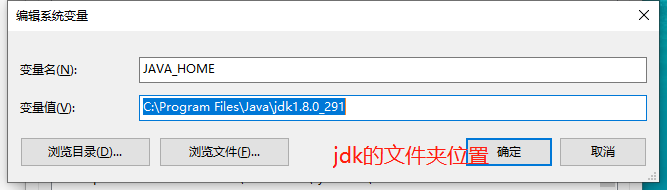 3、填写变量名JAVA_HOME,变量值为jdk的安装路径,点击确定按钮