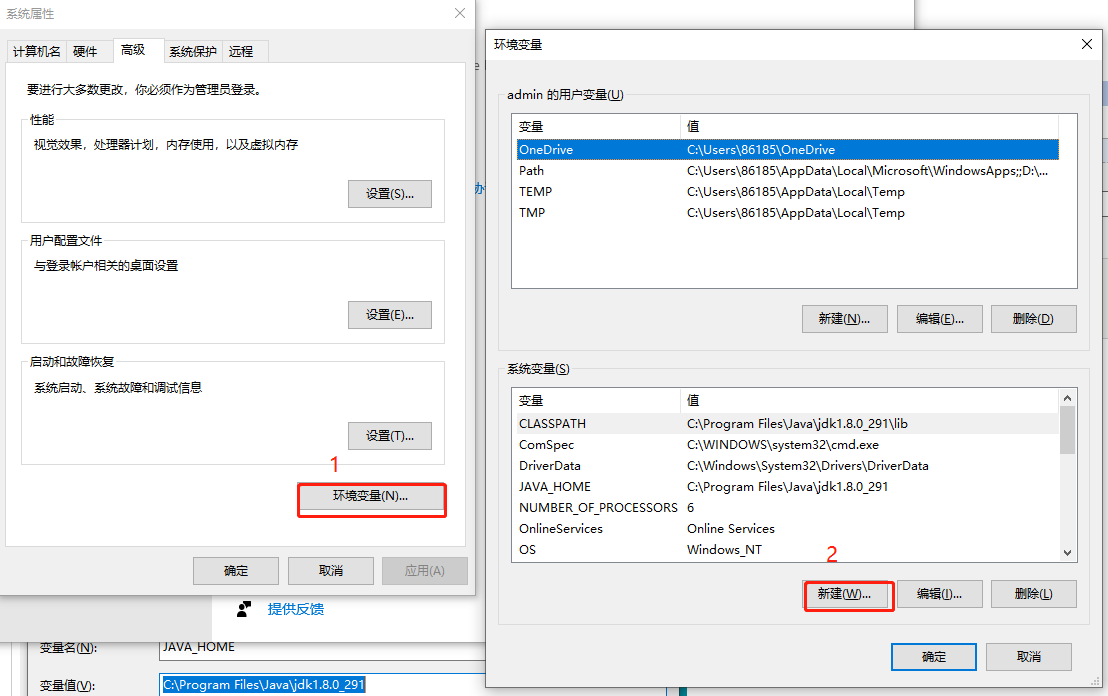 2、点击环境变量、点击系统变量的新建按钮