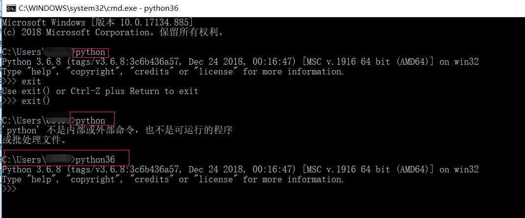 b.手动更改名称为python36后,输入python36即可