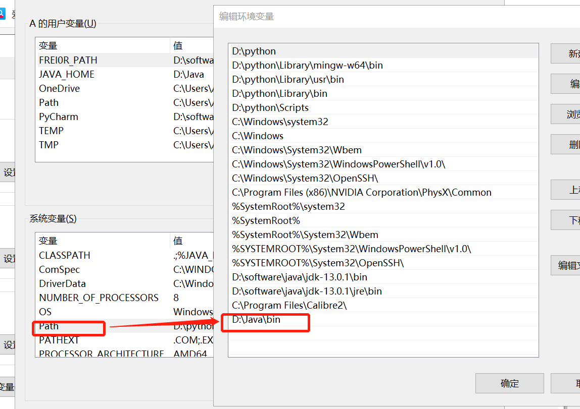 JAVA_HOME环境变量。它指向Jdk的安装目录,可以是JAVA_HOME=“D:\jdk1.8”。因为jdk安装目录因人而异,有的人安装在C盘,有的在D盘,但其他应用程序可没法知道你到底安装在哪,唯一的办法就是规定一个JAVA_HOME 环境变量,需要用JDK的程序只要引用JAVA_HOME就可以搞定~,比如Eclipse//Hadoop/NetBeans/Tomcat等软件就是通过搜索JAVA_HOME变量来找到并使用JDK的。