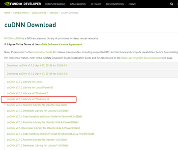安装CuDNN,下载地址:https://developer.nvidia.com/rdp/cudnn-download(下载CuDNN需要注册账号,注册过程比较简单),注意选择与CUDA对应的版本。