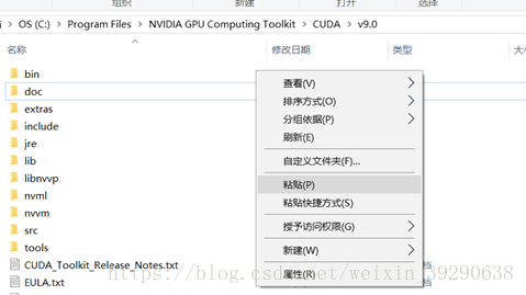 将这三个文件拷贝到CUDA9.0的安装路径根文件夹下