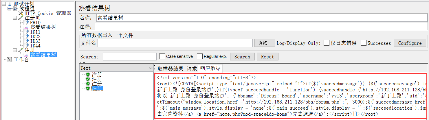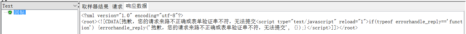 从察看结果树复制过来的正则表达式是name="formhash" value="(.+?)" />,但是怕复制多的空格过来,所以将所有空格去掉,变成name="formhash"value="(.+?)"/>,但是这样也会报错错误信息是“您的请求来路不正确。。。。”