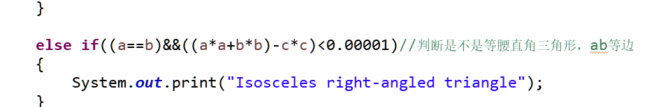 else if((a==b)&&((a*a+b*b)-c*c)<0.00001)//判断是不是等腰直角三角形,ab等边